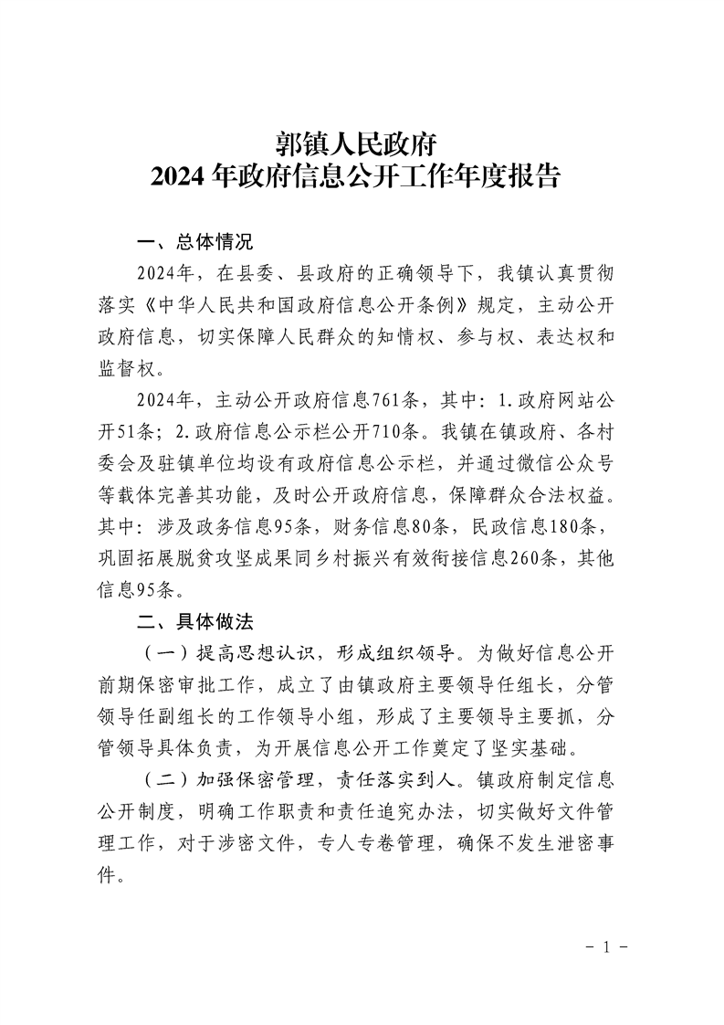 郭镇人民政府2024年星空彩票官网下载安装工作年度报告