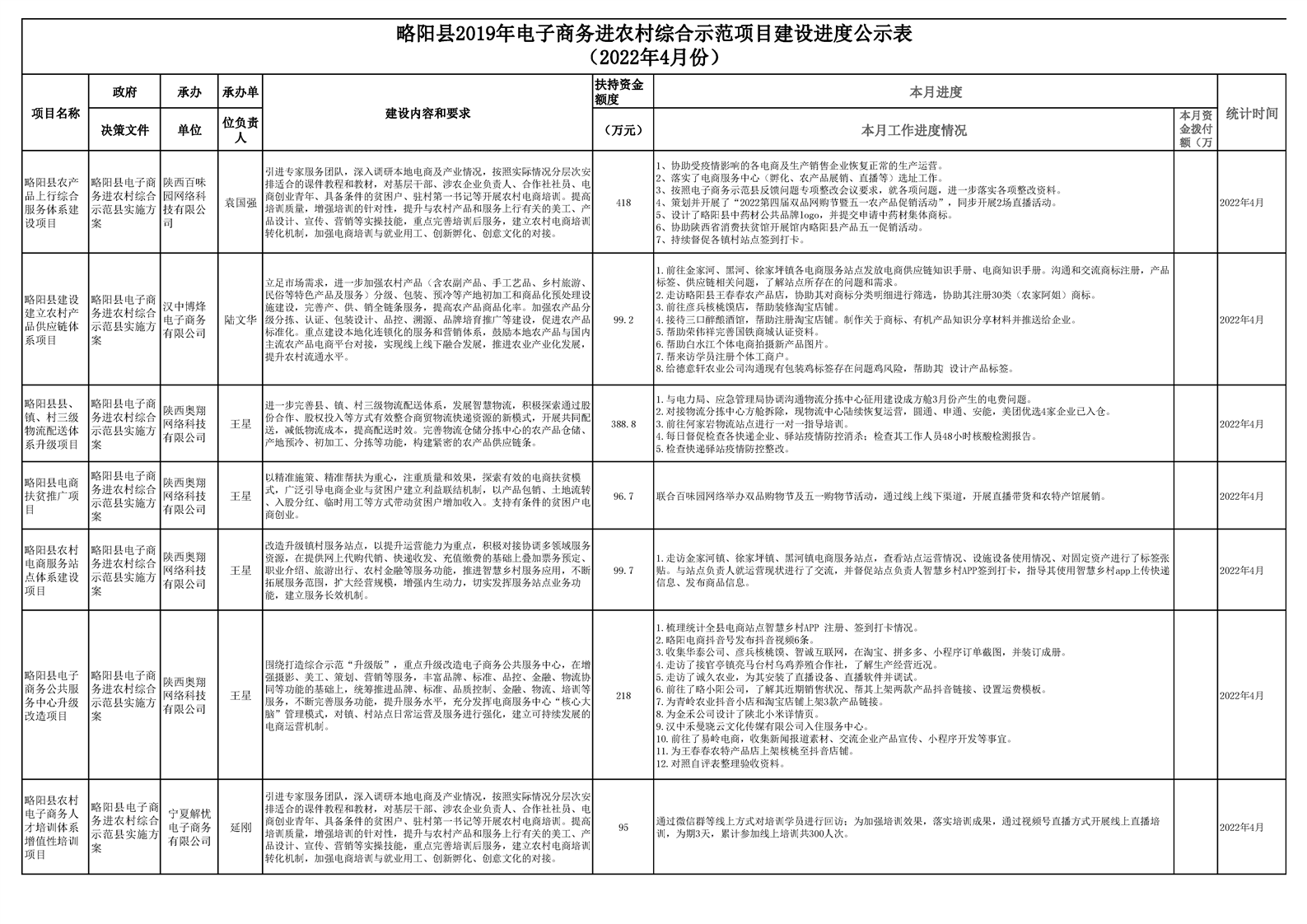 星空体育首页app2019年电子商务进农村综合示范项目建设进度公示表(2022年4月份)