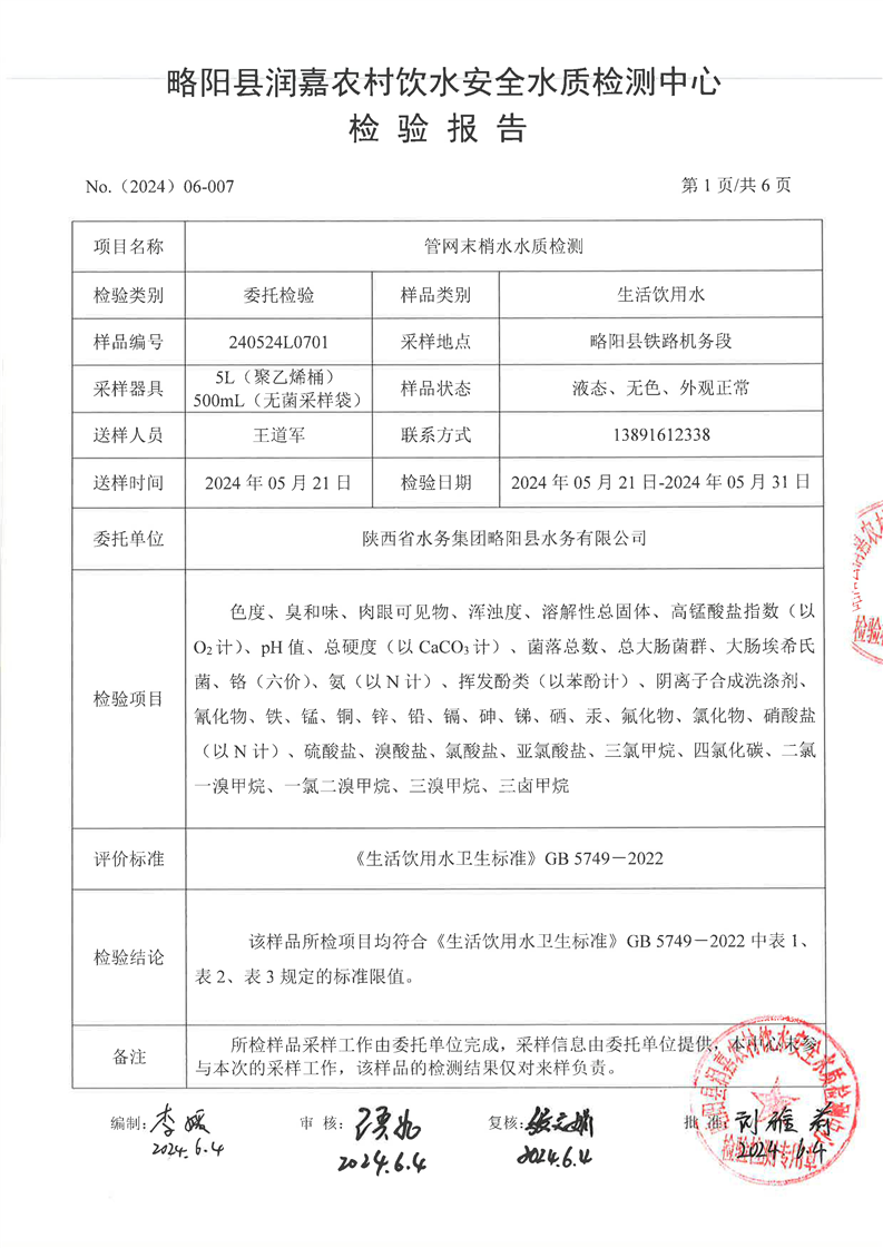 铁路机务段龙头水检测报告5月