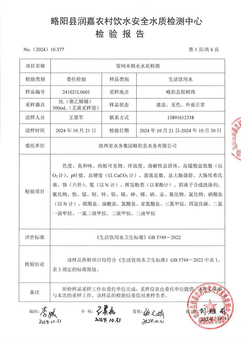 CMA检测报告10月-6城区管网末梢-棕树湾