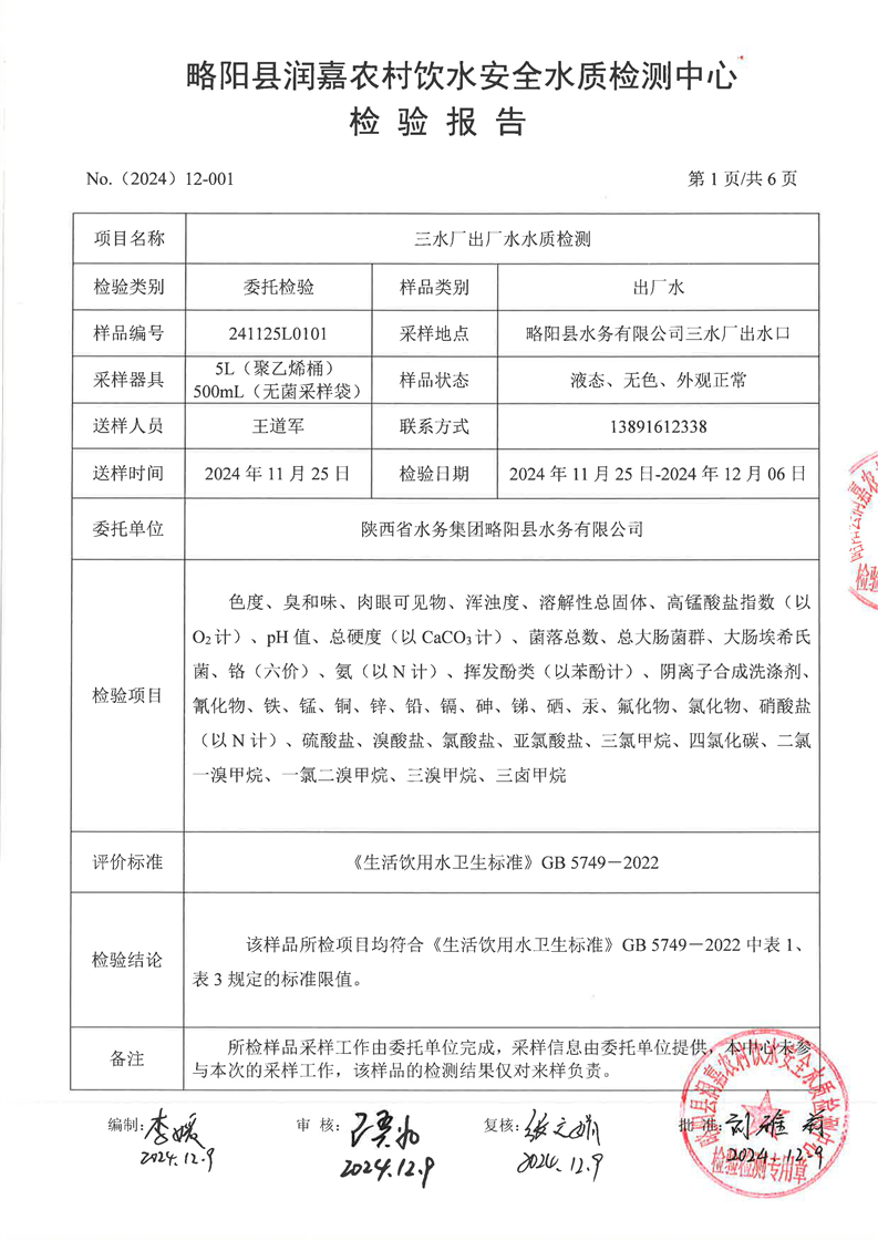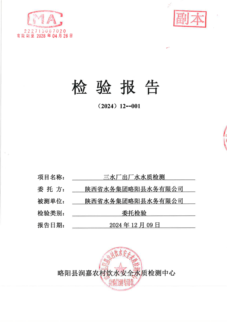CMA检测报告11月-1出厂水