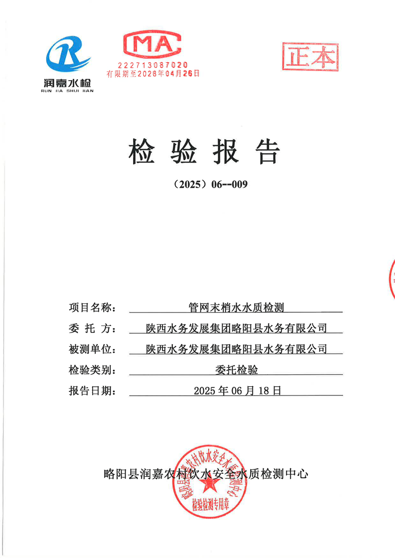 水质检测报告6月-6城区管网末梢-铁路机务段