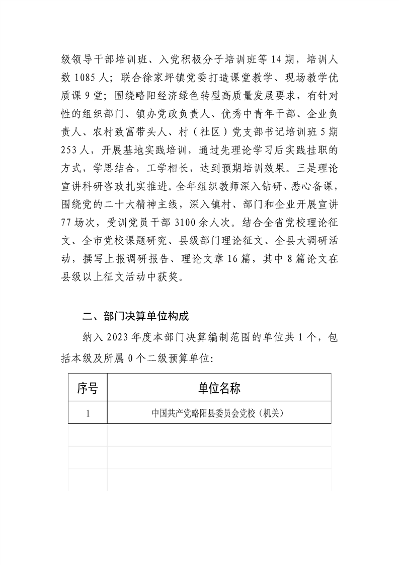 内容概述 | 中国共产党星空体育首页app委员会党校2023年度部门决算 |