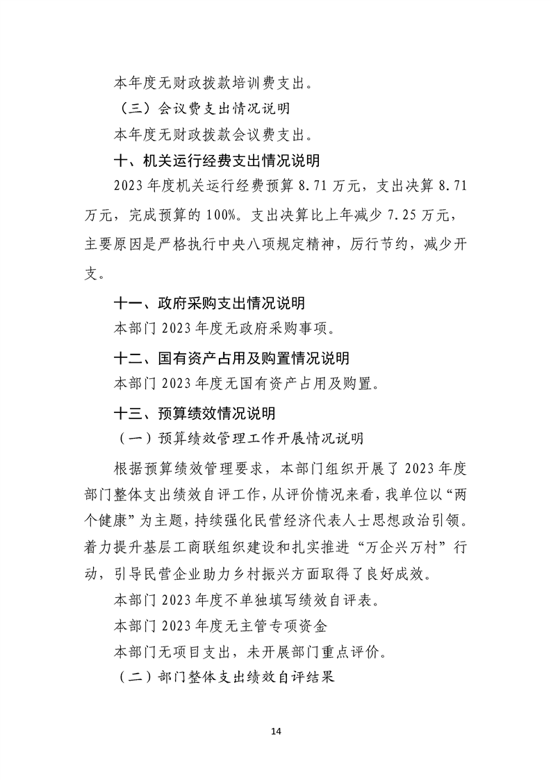 内容概述 | 星空体育首页app工商业联合会2023年度部门决算 |