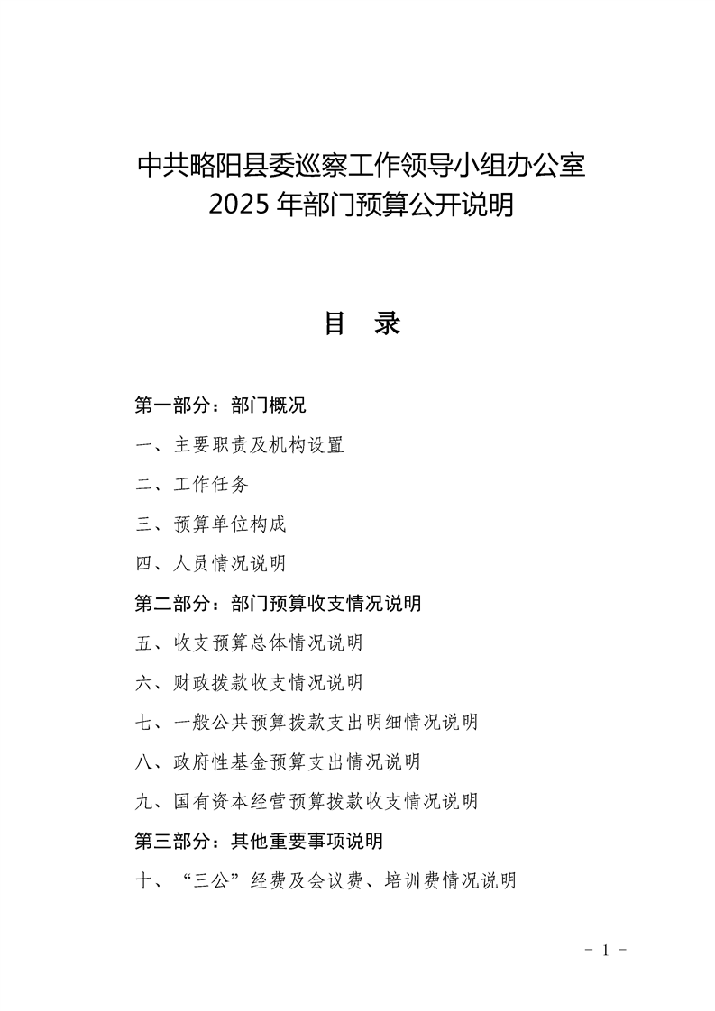 内容概述 | 中共星空体育首页app委巡察工作领导小组办公室2025年部门预算公开说明 |
