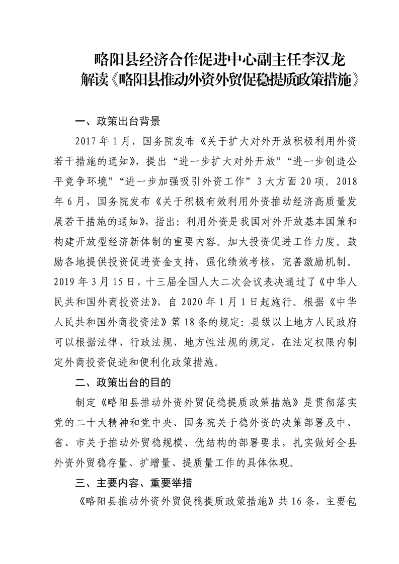 | 内容概述 | 【负责人解读】星空体育首页app经济合作促进中心副主任李汉龙解读《星空体育首页app推动外资外贸促稳提质政策措施》 | ||||