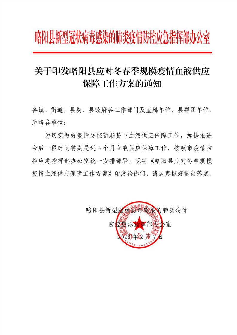 关于印发星空体育首页app应对冬春季规模疫情血液供应保障工作方案的通知