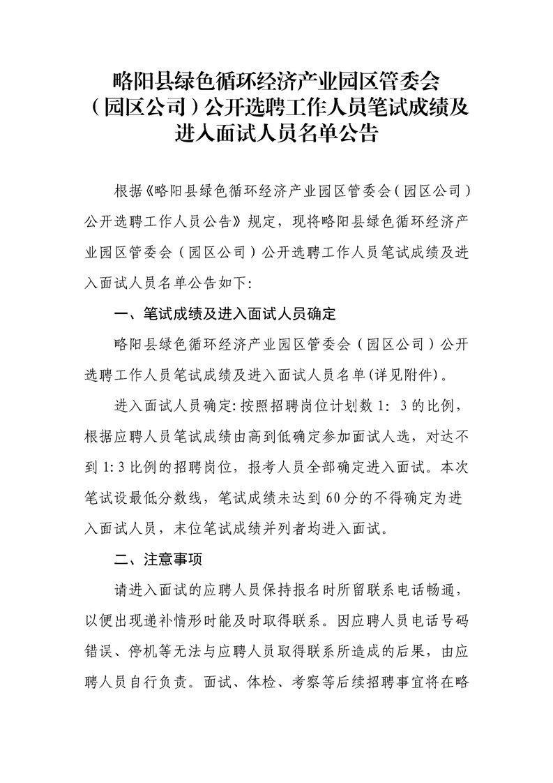 内容概述 | 星空体育首页app绿色循环经济产业园区管委会(园区公司)公开选聘工作人员笔试成绩及进入面试人员名单公告 |