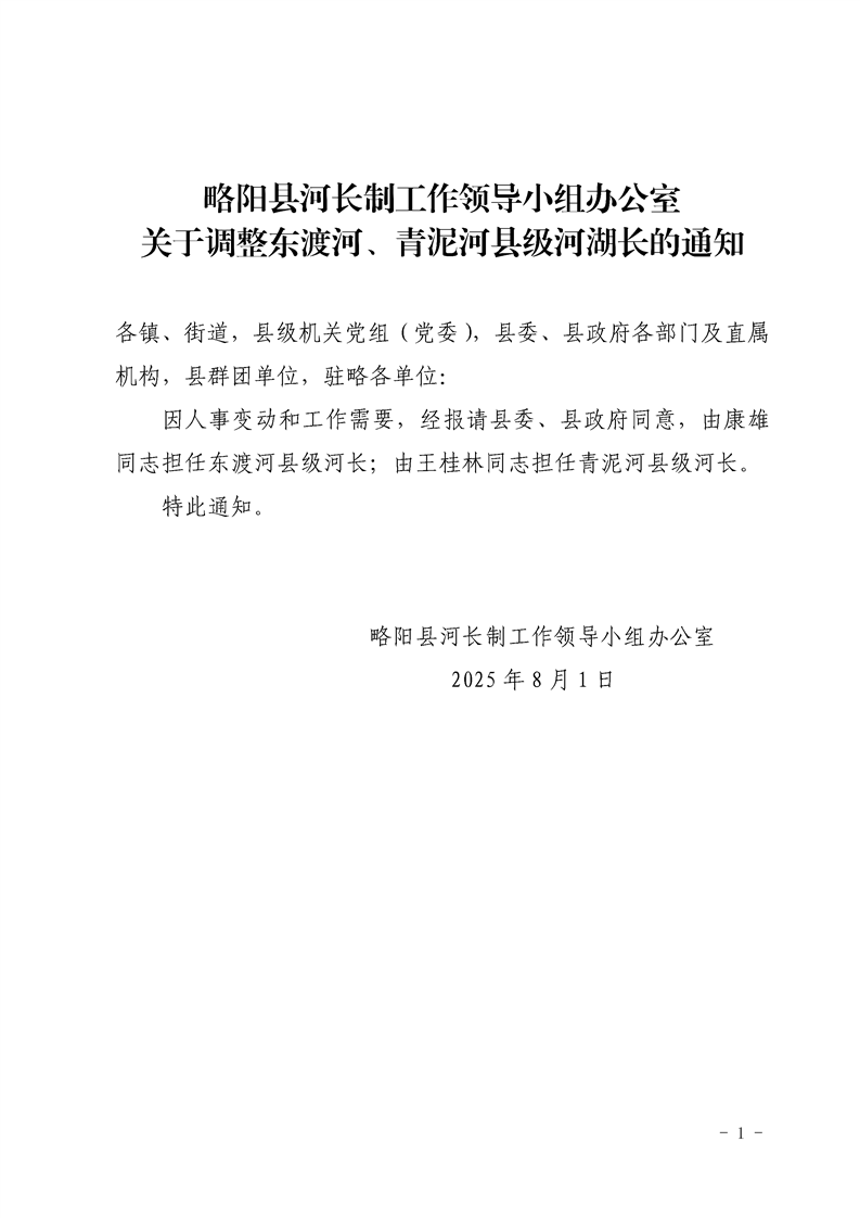 | 内容概述 | 星空体育首页app河长制工作领导小组办公室关于调整东渡河、青泥河县级河湖长的通知 | ||||