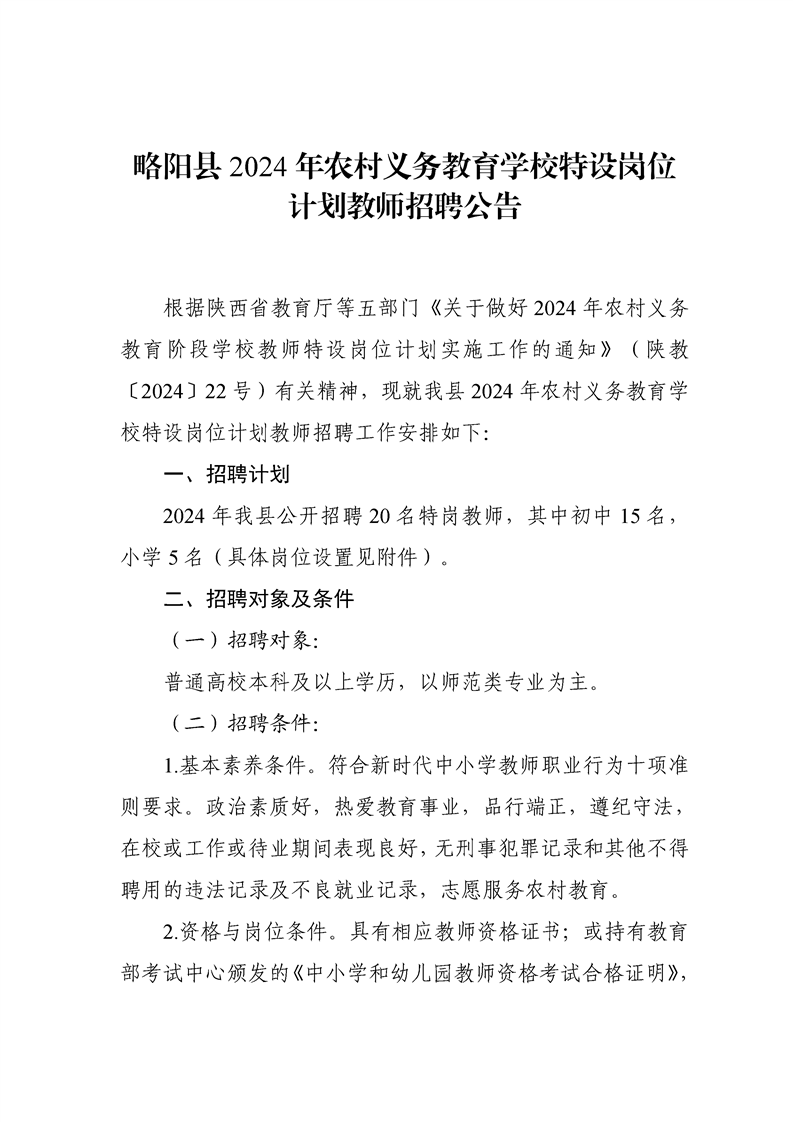 内容概述 | 星空体育首页app2024年农村义务教育学校特设岗位计划教师招聘公告 |