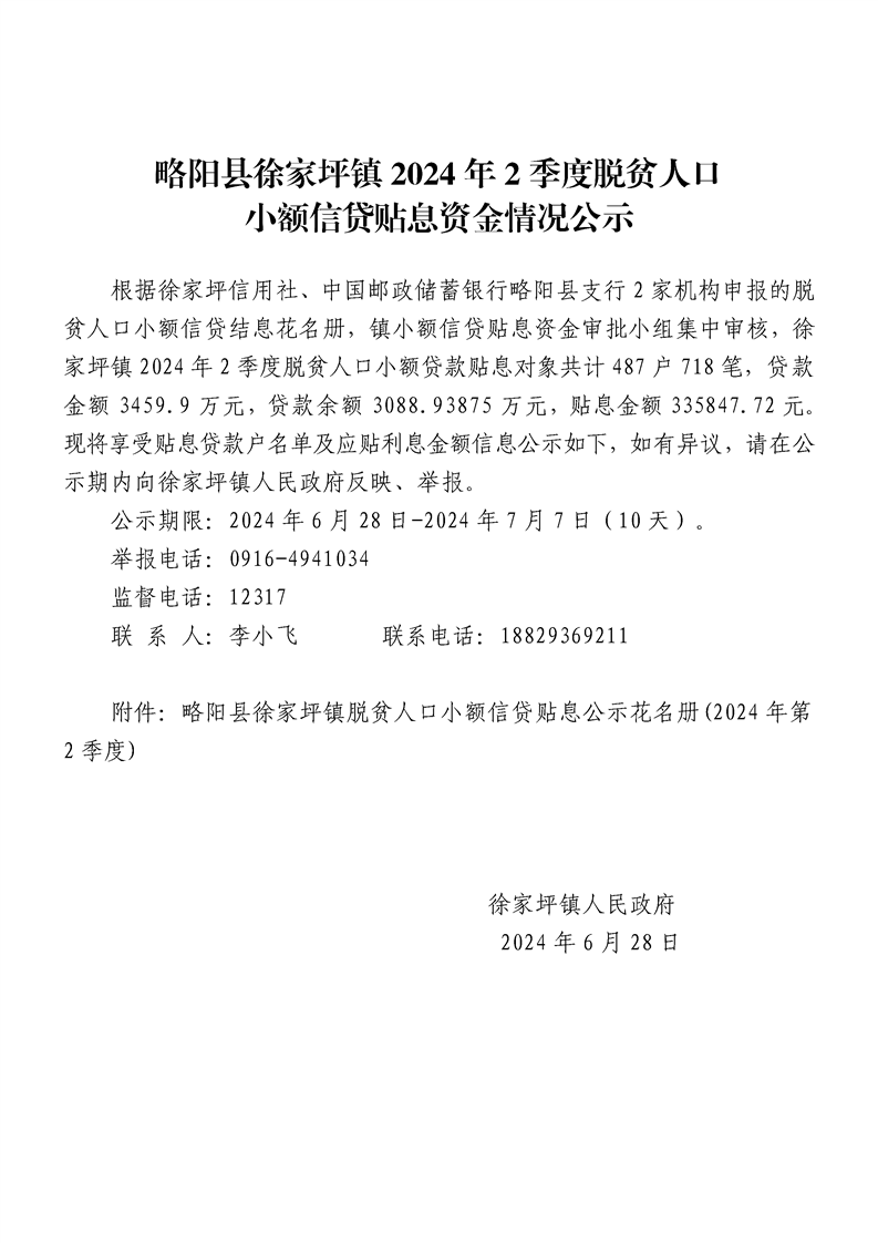 内容概述 | 星空体育首页app徐家坪镇2024年2季度脱贫人口小额信贷贴息资金情况公示 |