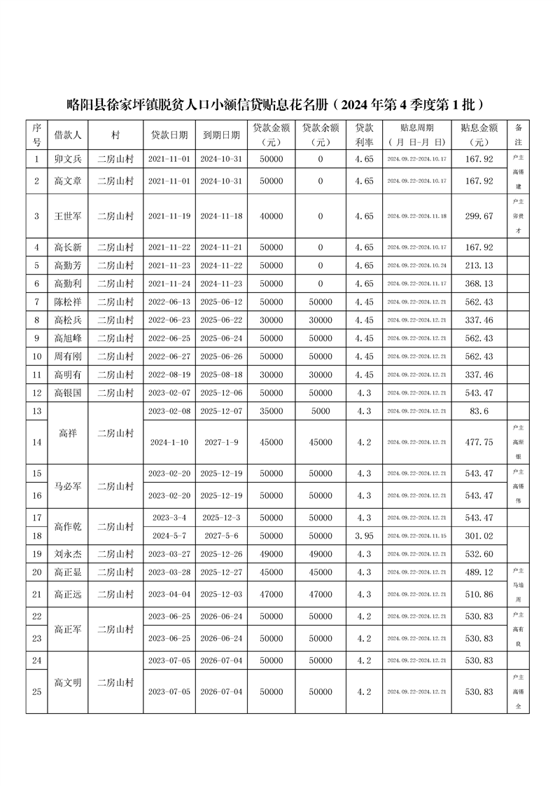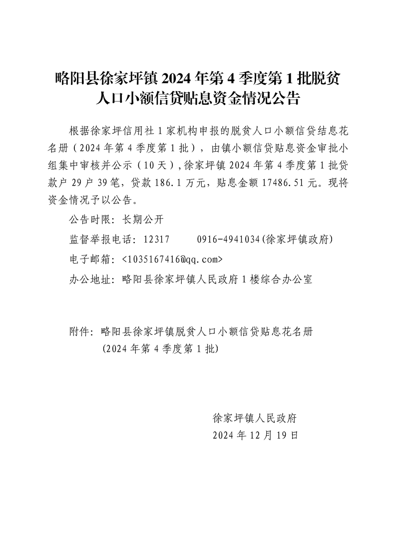 内容概述 | 星空体育首页app徐家坪镇2024年第4季度第1批脱贫人口小额信贷贴息资金情况公告 |