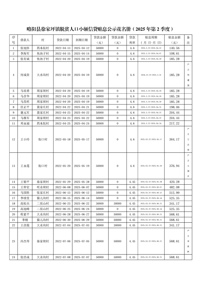 | 内容概述 | 星空体育首页app徐家坪镇2025年2季度脱贫人口小额信贷贴息资金情况公示 | ||||