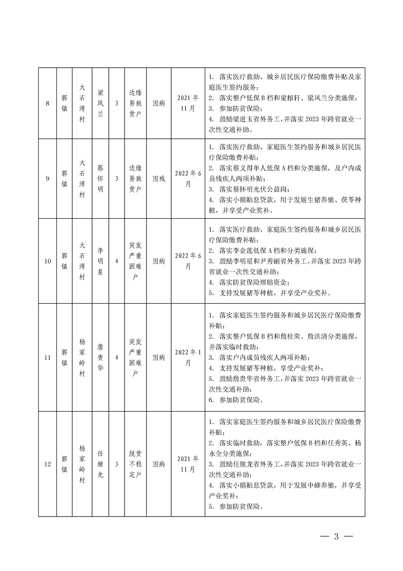 星空体育首页app2024年(第三批)防返贫监测消除风险户公告