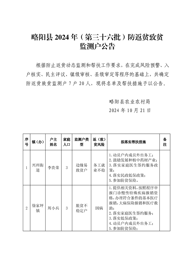 星空体育首页app防返贫致贫监测户公告(第36批)