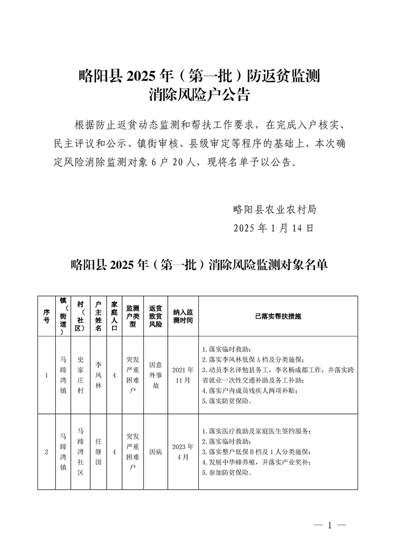 星空体育首页app2025年(第一批)防返贫监测消除风险户公告