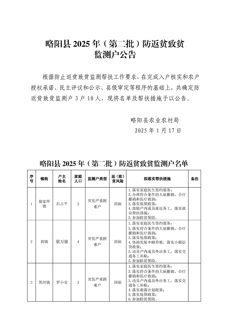 星空体育首页app(第2批)防返贫致贫监测户公告