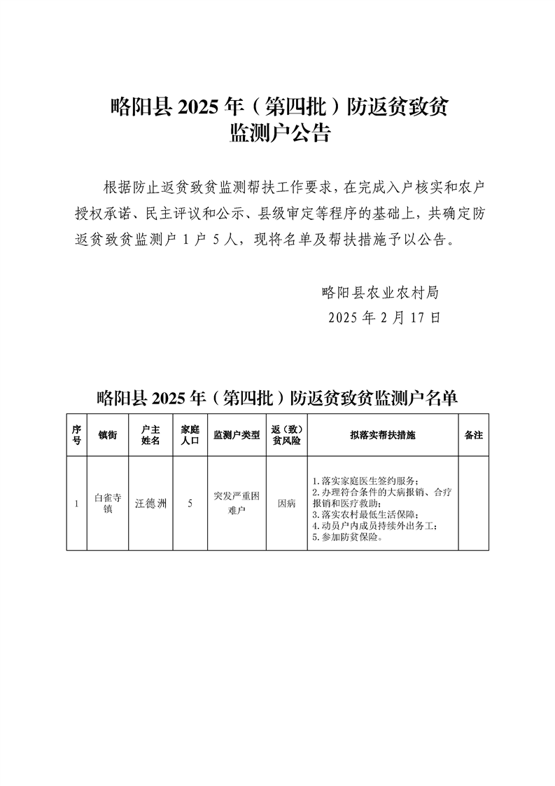 星空体育首页app(第4批)防返贫致贫监测户公告