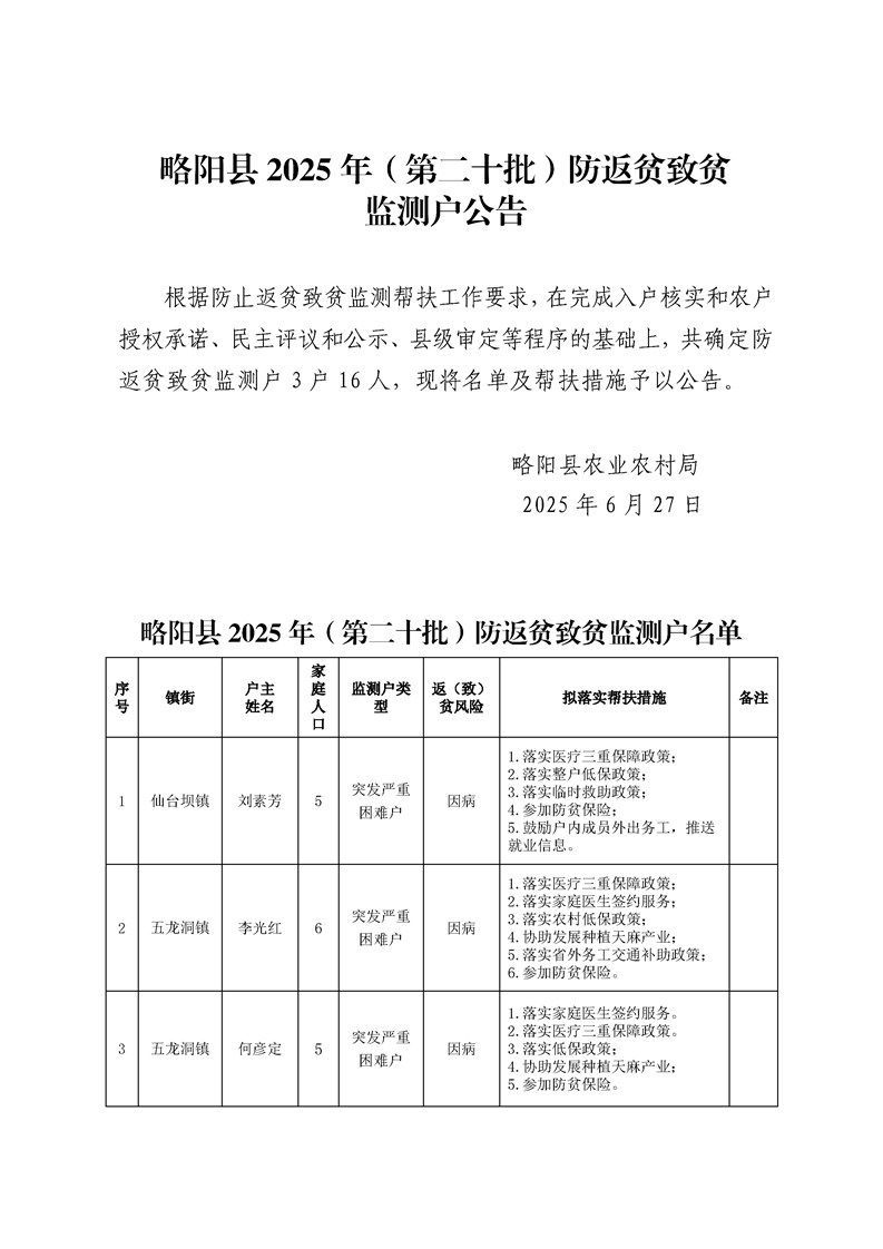 星空体育首页app(第20批)防返贫致贫监测户公告