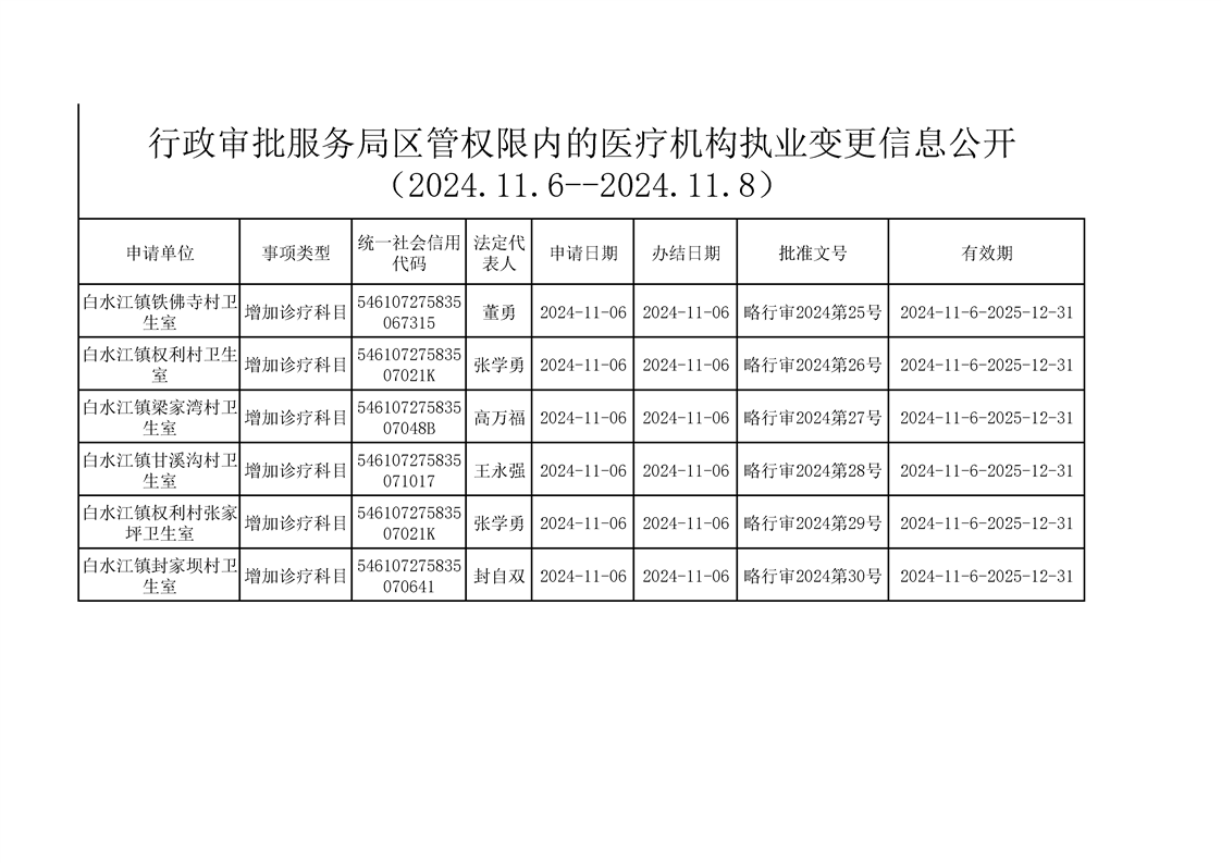 行政审批服务局区管权限内的医疗机构执业变更信息公开(2024.11.6--2024.11.8)