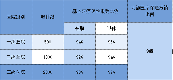 参加城乡居民基本医保的所有参保人员,大病保险起付标准为10000元,对于起付标准以上、最高支付限额以下的政策范围内费用,分三段按比例支付。1万元(含)-3万元支付60%,3万元(含)-10万元支付70%,10万元(含)以上支付80%,年度最高支付限额30万。