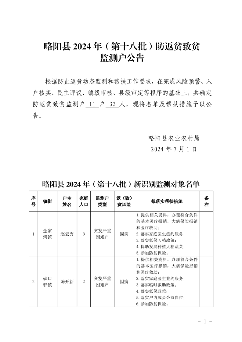 星空体育首页app防返贫致贫监测户公告(第18批)