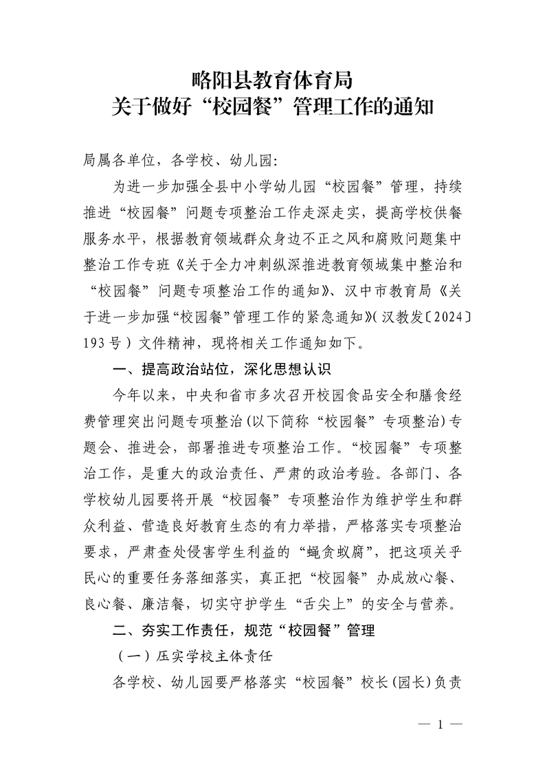 略教体发〔2024〕113号星空体育首页app教育体育局关于做好“校园餐”管理工作的通知