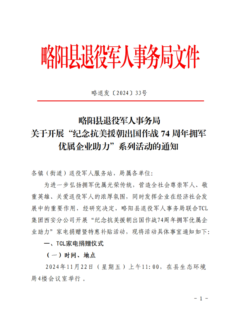 关于开展“纪念抗美援朝出国作战74周年拥军优属企业助力”系列活动的通知