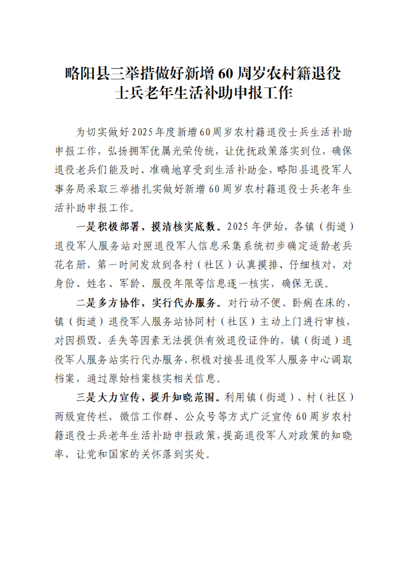 星空体育首页app三举措做好新增60周岁农村籍退役士兵老年生活补助申报工作