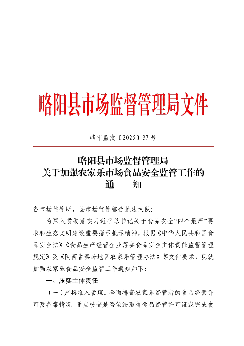 星空体育首页app市场监督管理局关于加强农家乐市场食品安全监管工作的通知