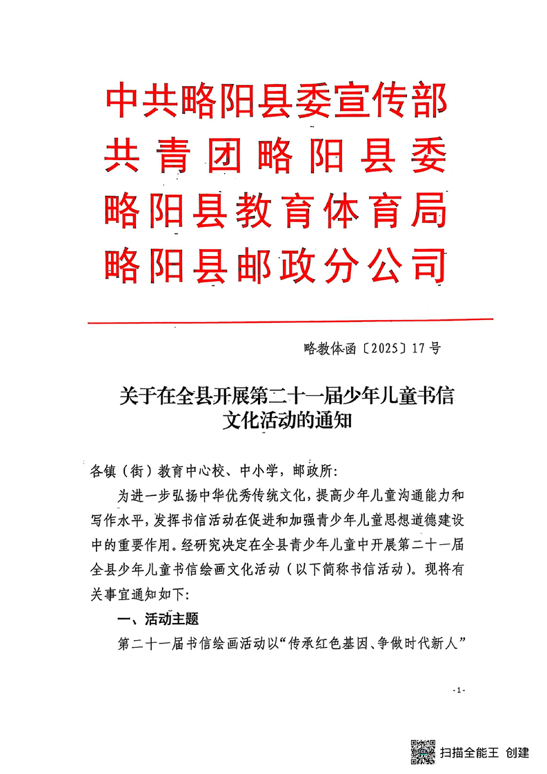 星空体育首页app教育体育局关于在全县开展第二十一届少年儿童书信文化活动的通知