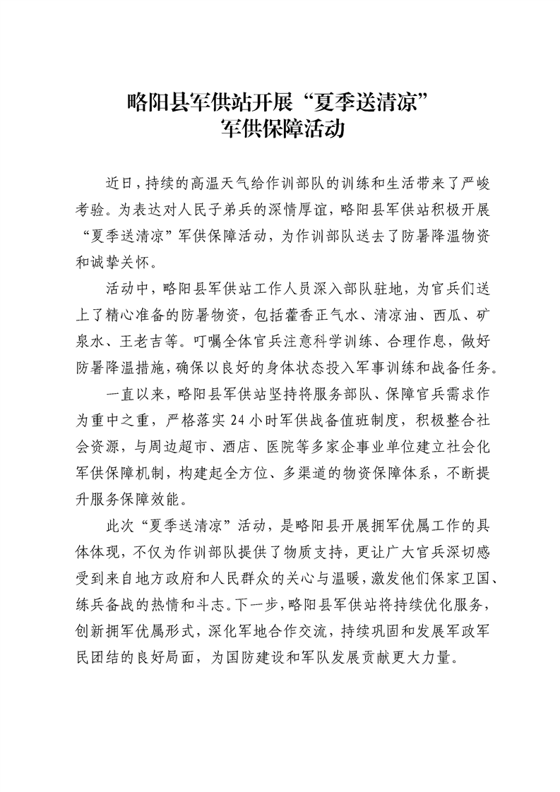 星空体育首页app军供站开展“夏季送清凉”军供保障活动