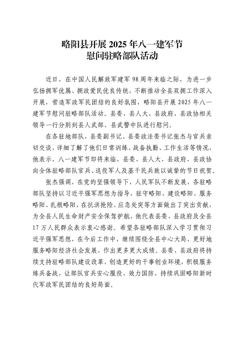 星空体育首页app开展2025年八一建军节慰问驻略部队活动