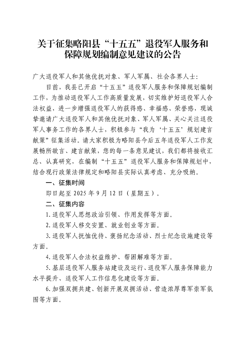 关于征集星空体育首页app“十五五”退役军人服务和保障规划编制意见建议的公告