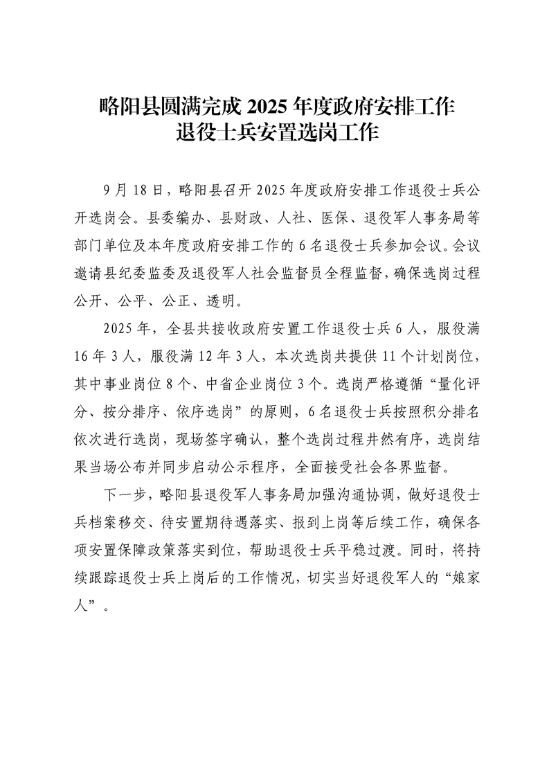 星空体育首页app圆满完成2025年度政府安排工作退役士兵安置选岗工作