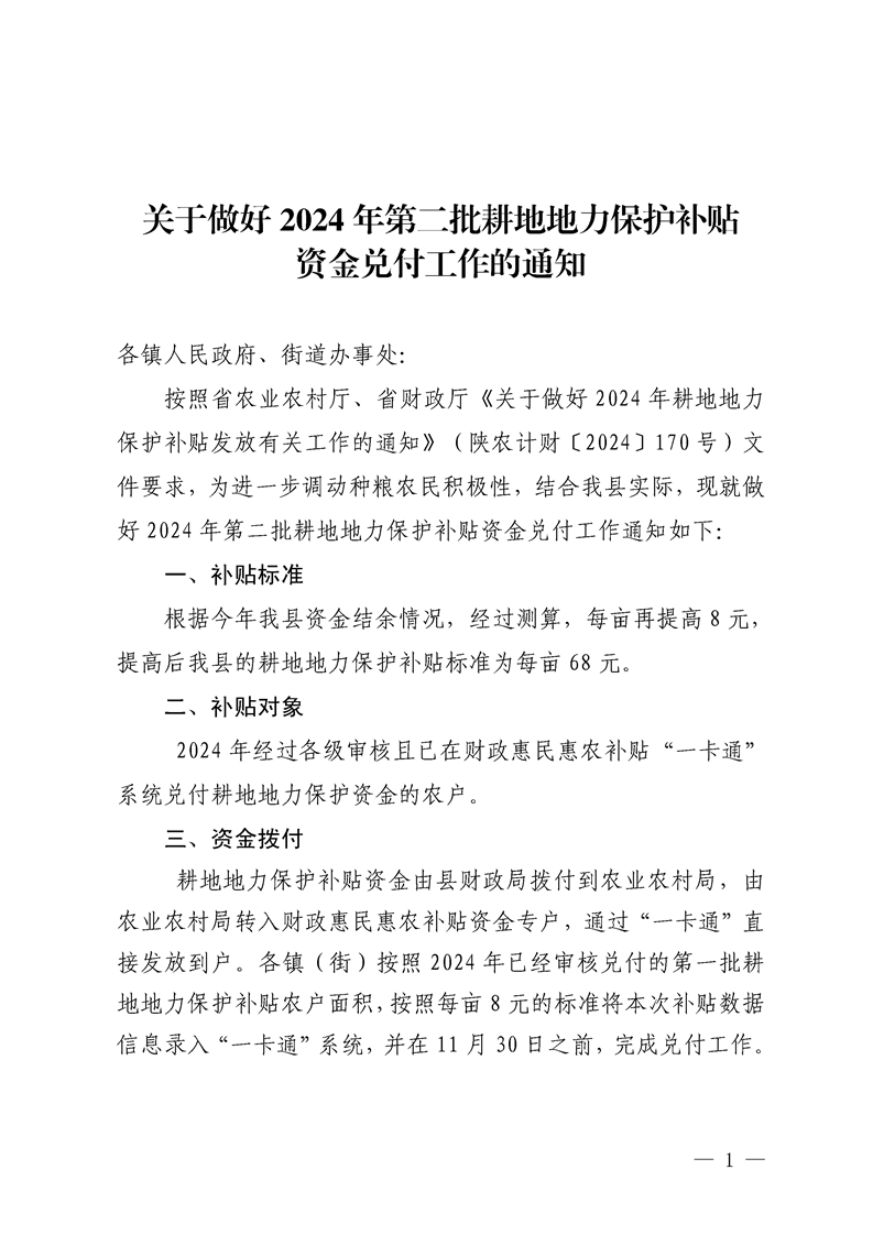 关于做好2024年第二批耕地地力保护补贴资金兑付工作的通知