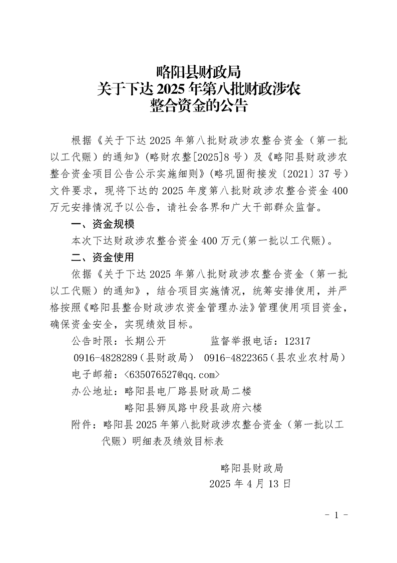 星空体育首页app财政局关于下达2025年第八批整合财政涉农资金的公告