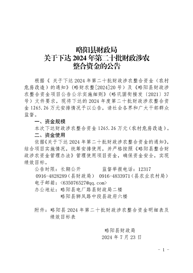 星空体育首页app财政局关于下达2024年第二十批财政涉农整合资金的公告
