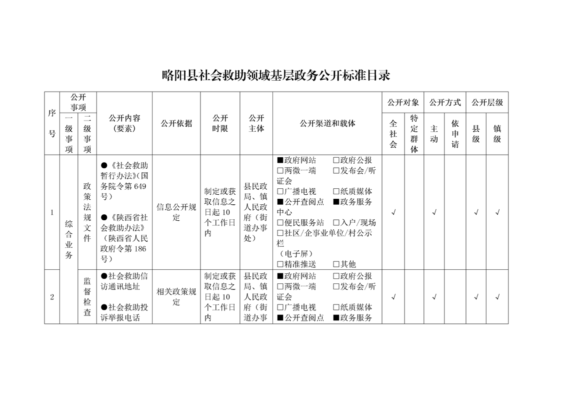 内容概述 | 星空体育首页app社会救助领域基层政务公开标准目录 |