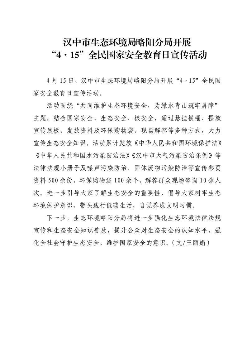 汉中市生态环境局略阳分局开展“4·15”全民国家安全教育日宣传活动