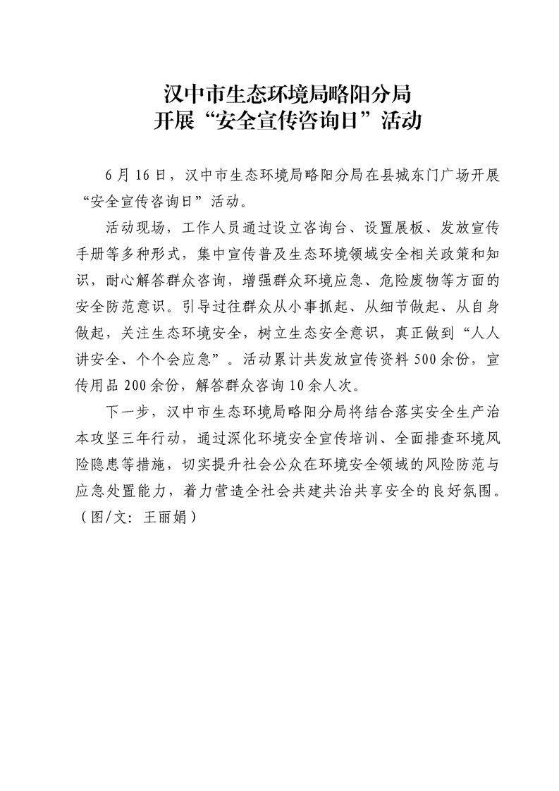 汉中市生态环境局略阳分局开展“安全宣传咨询日”活动