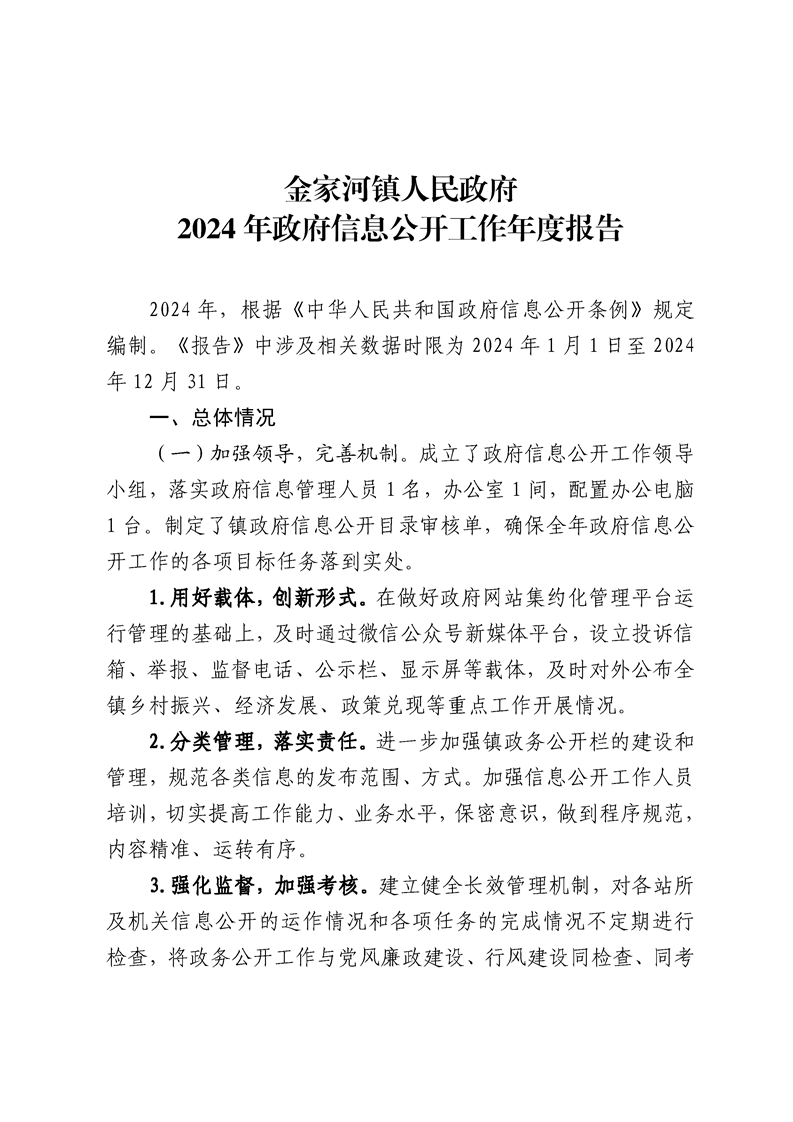金家河镇人民政府2024年星空彩票官网下载安装工作年度报告