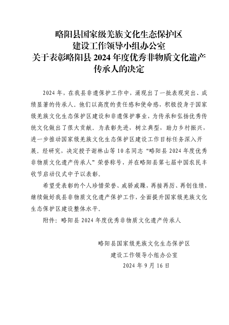 星空体育首页app国家级羌族文化生态保护区建设工作领导小组办公室关于表彰星空体育首页app2024年度优秀非物质文化遗产传承人的决定