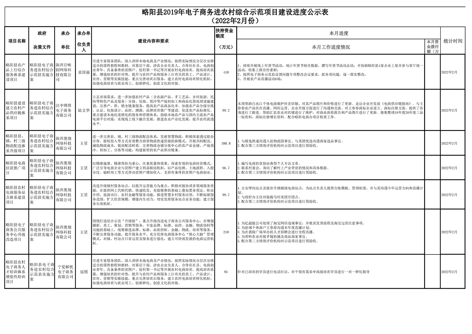 星空体育首页app2019年电子商务进农村综合示范项目建设进度公示表(2022年2月份)