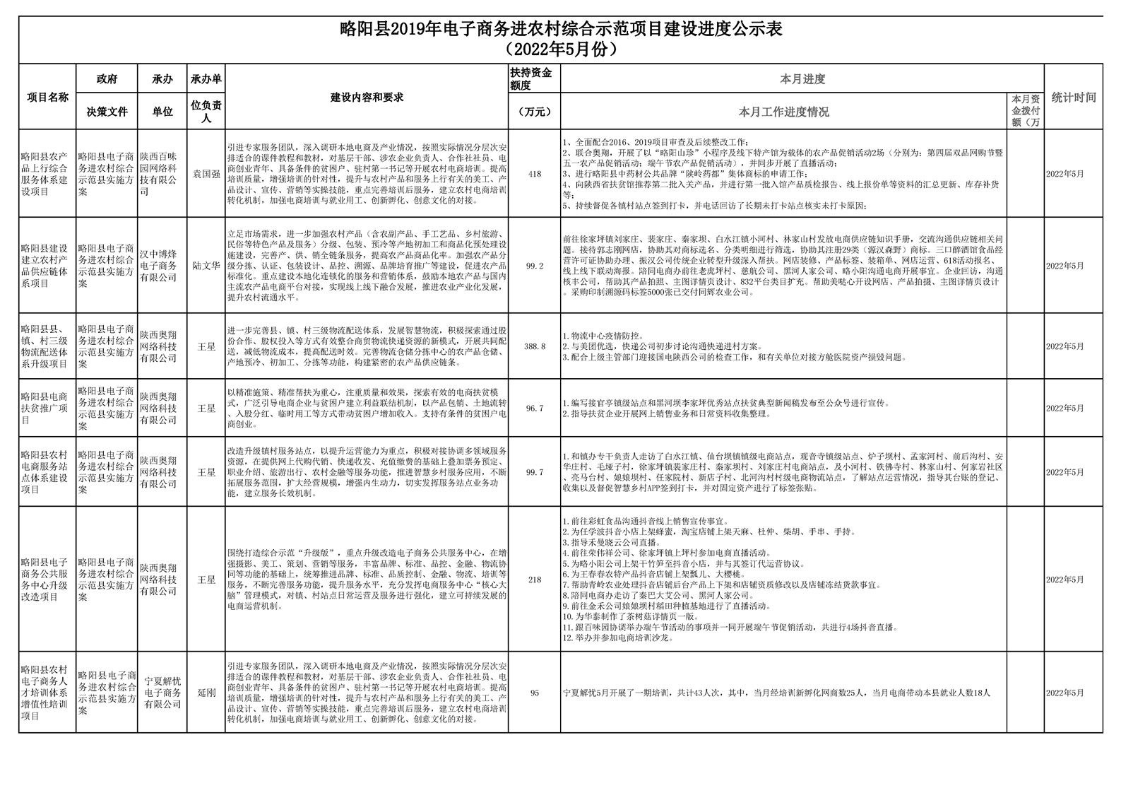 星空体育首页app2019年电子商务进农村综合示范项目建设进度公示表2022年5月份