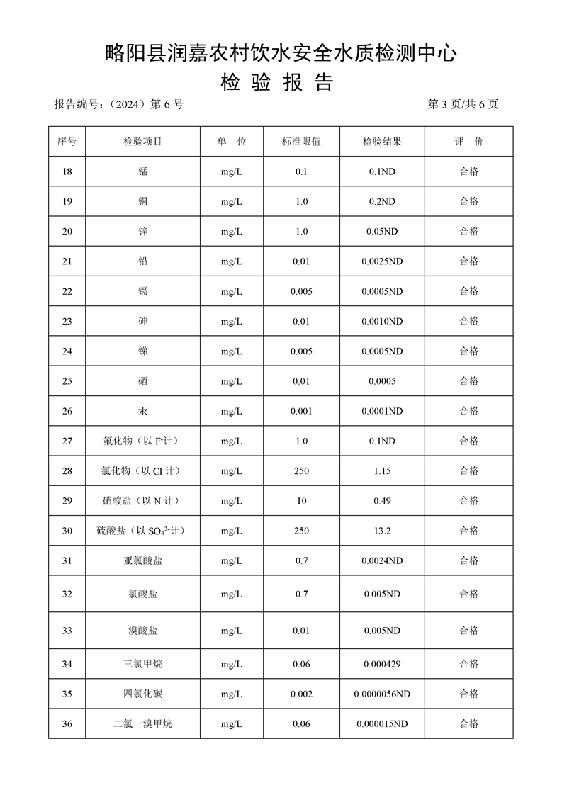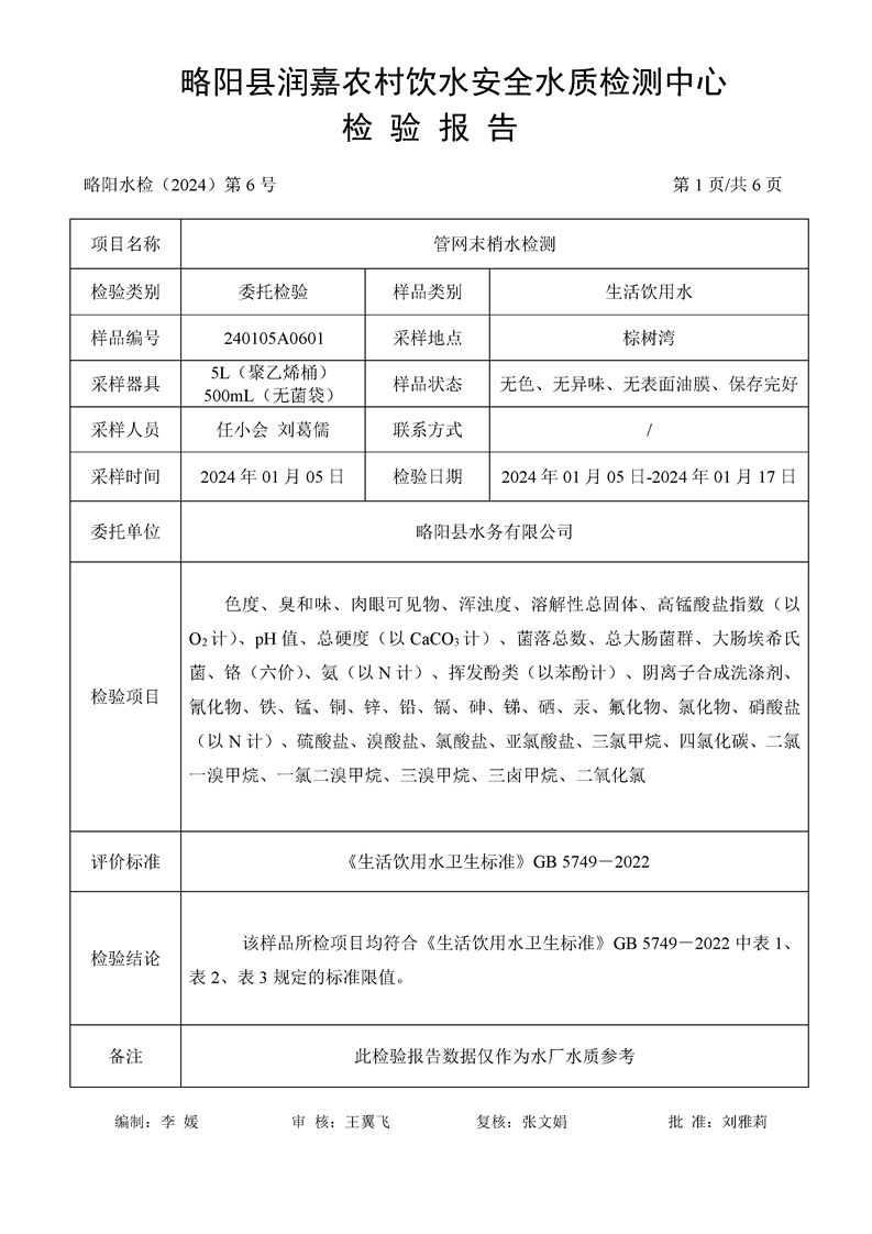 棕树湾龙头水检测报告1月