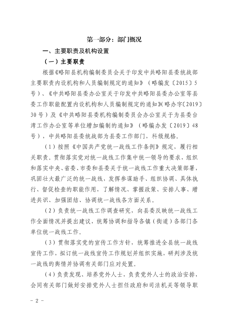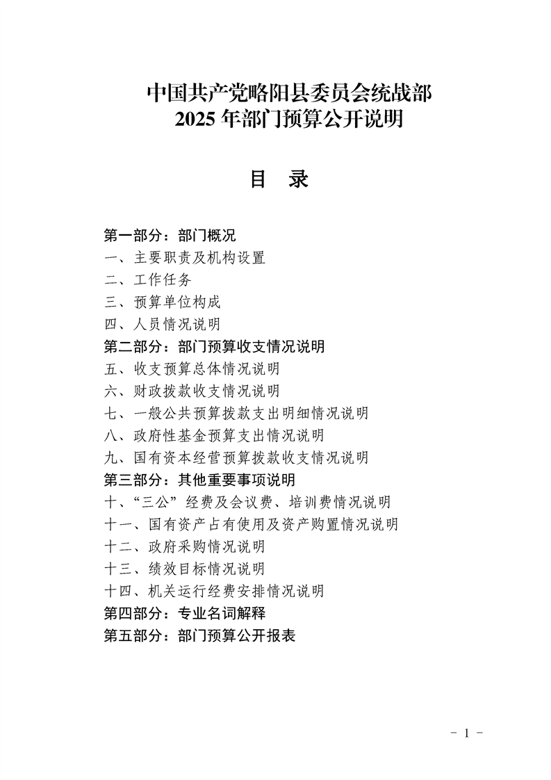 内容概述 | 中国共产党星空体育首页app委员会统战部2025年部门预算公开说明 |