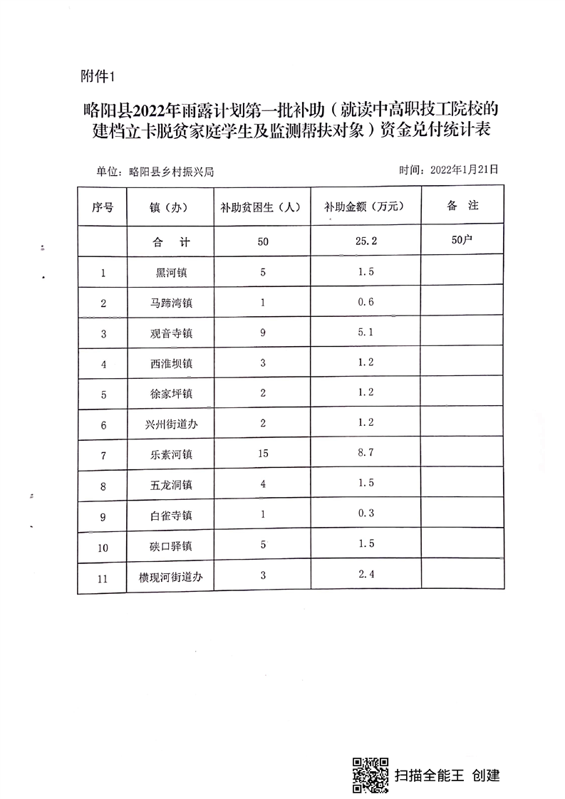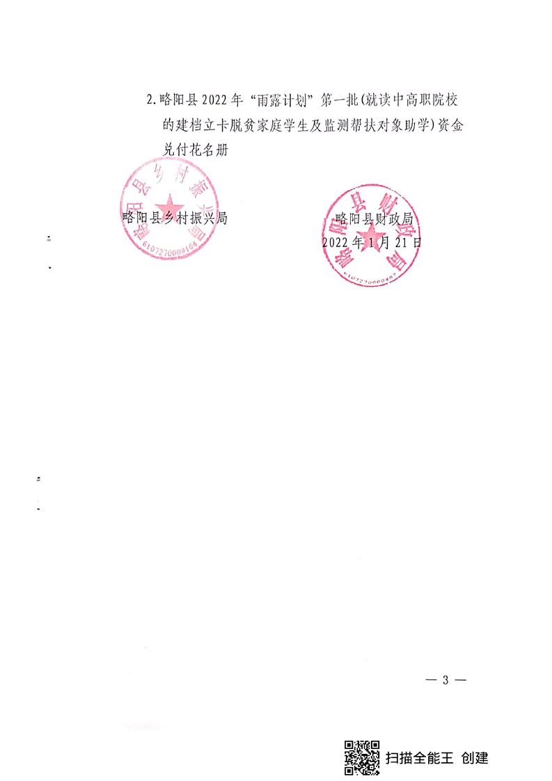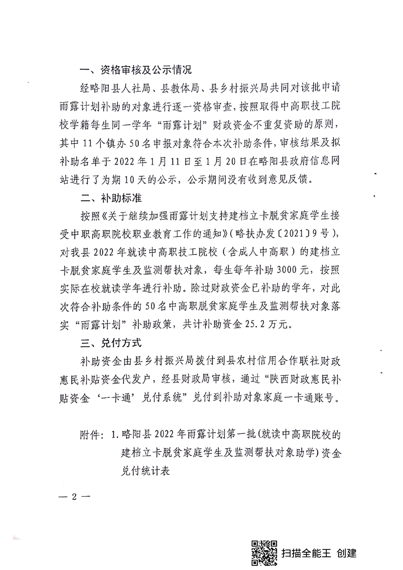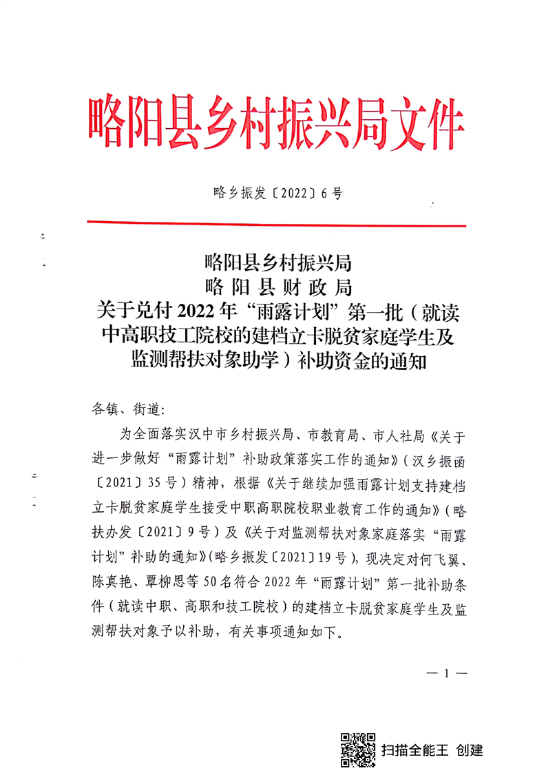 内容概述 | 关于兑付2022年“雨露计划”第一批(就读中高职技工院校的建档立卡脱贫家庭学生及监测帮扶对象助学)补助资金的通知 |