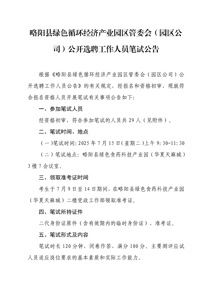 | 内容概述 | 星空体育首页app绿色循环经济产业园区管委会(园区公司)公开选聘工作人员笔试公告 | ||||