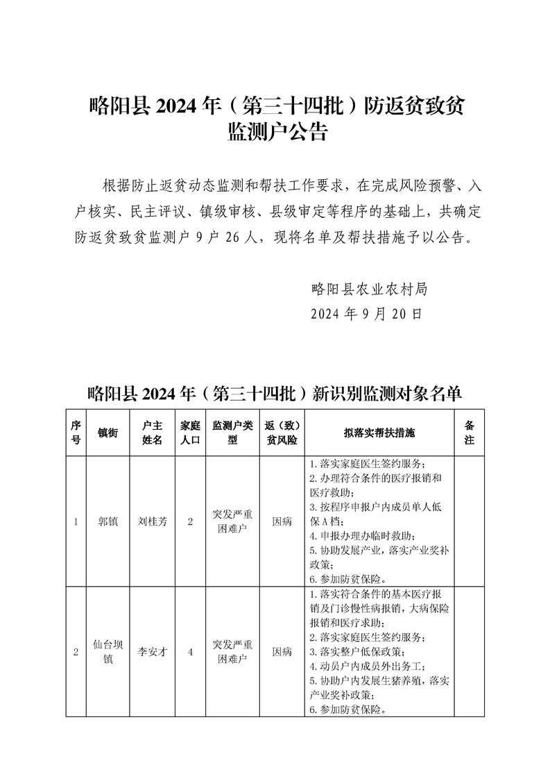 星空体育首页app防返贫致贫监测户公告(第34批)
